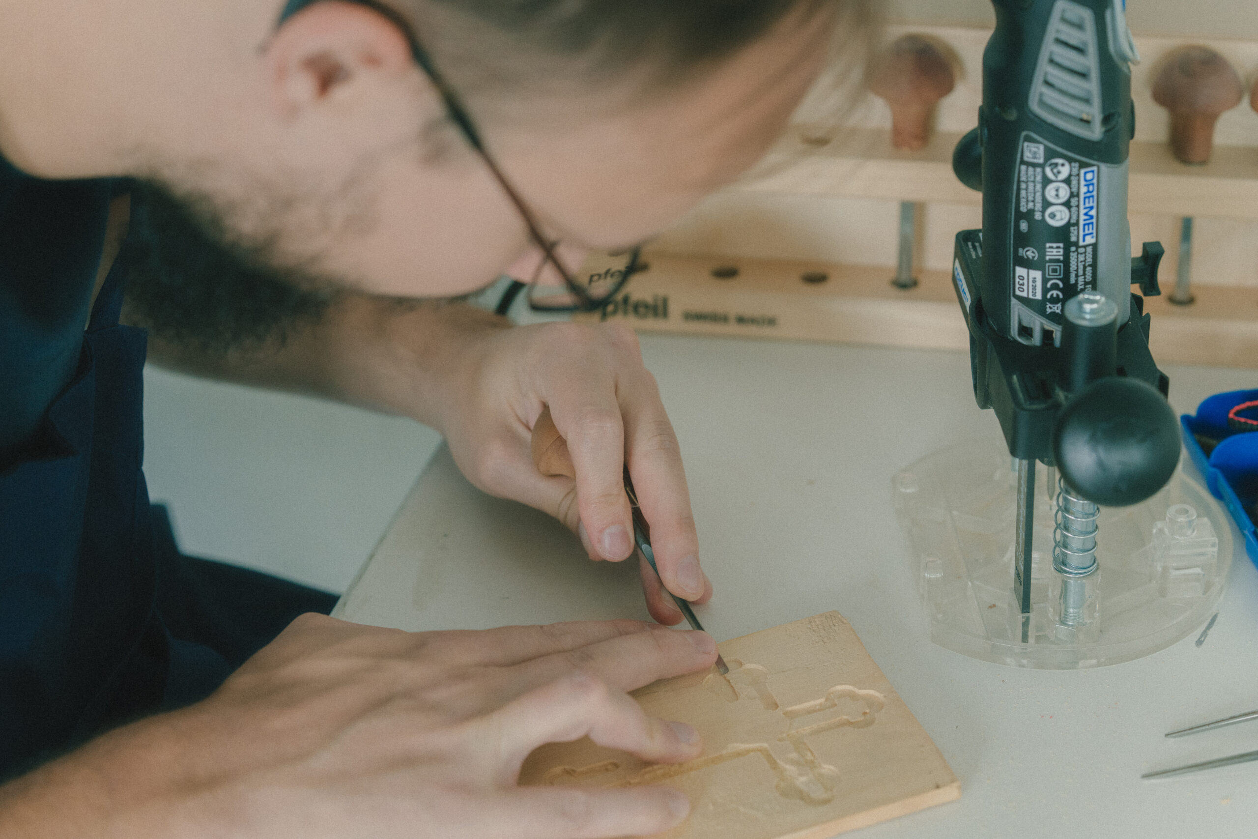 My father’s work as a carpenter ignited my fascination with wood, whether it’s the acoustics of clarinets or the art of hand carving. I primarily work with hardwoods like boxwood. Interestingly, during a certain historical period, clarinets were mainly made from boxwood. Compared to today’s prevalent use of granadilla wood, boxwood produces a sweeter, mellower, and more compact sound. Some modern clarinet manufacturers have begun producing models in boxwood again, recognizing its intriguingly compelling acoustical properties that might enrich the world of sound. Additionally, some of my distant ancestors from the Serbian Mijak tribe in the Balkans were renowned woodcarvers, so this passion is a natural part of my heritage. My equipment primarily consists of Swiss carving knives from Pfeil.